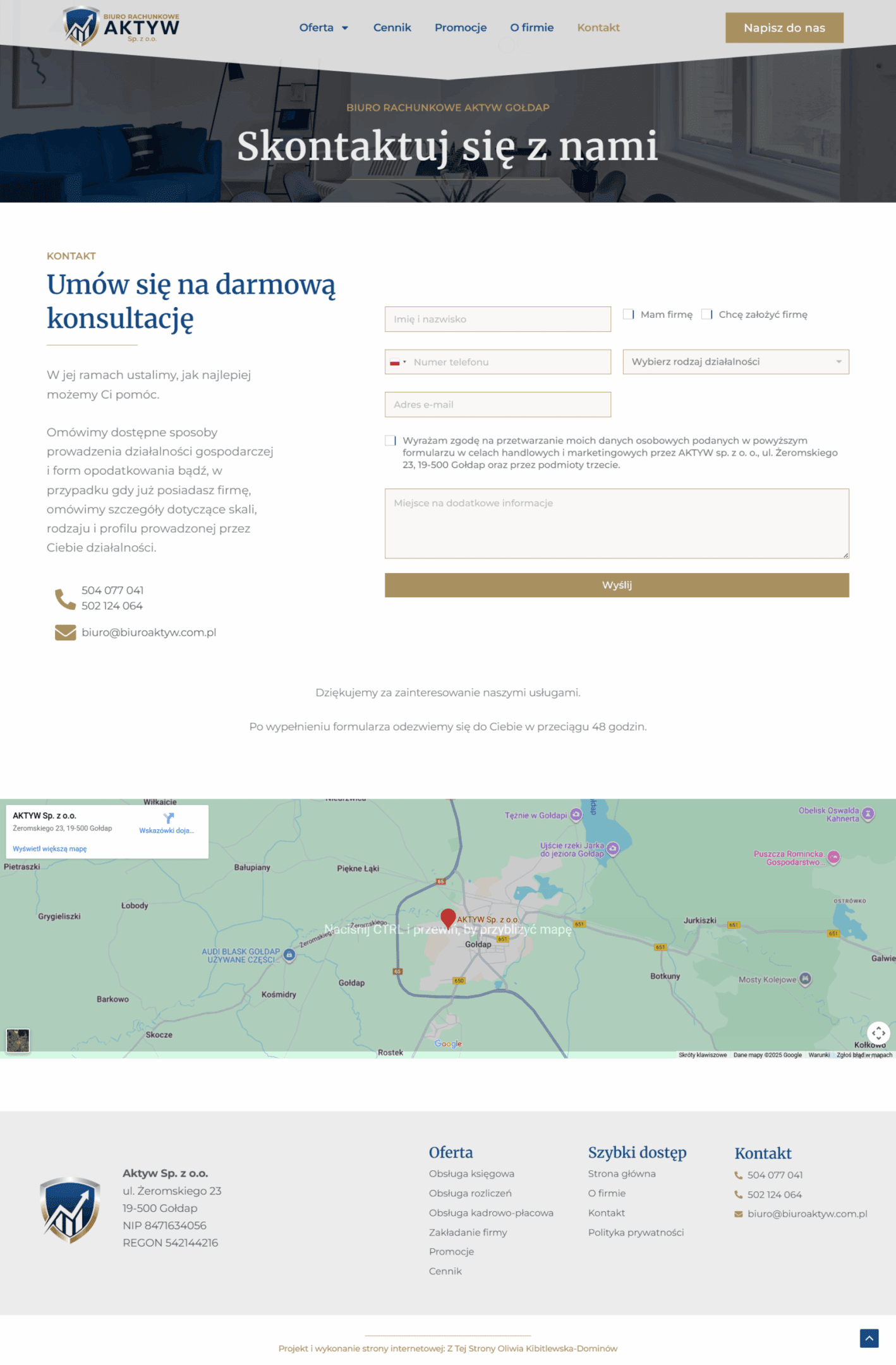 Właścicielki biura rachunkowego Aktyw potrzebowały strony, która jasno pokaże ich ofertę, a jednocześnie odda ciepło i zaufanie, jakim obdarzają swoich klientów.